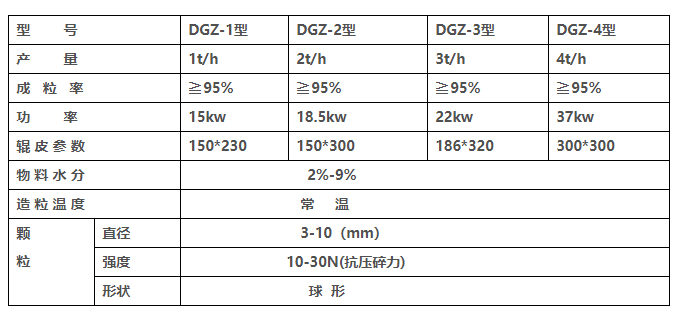 本系列造粒機,輥皮上的球窩的形狀及尺寸可視用戶所需,有較大范圍的選擇,擠壓形狀有枕頭狀、半圓球形、棒形、藥片藥丸形狀、核桃狀、扁球狀及方條形狀。目前均采用扁球形狀、其主要參數(shù)見表: